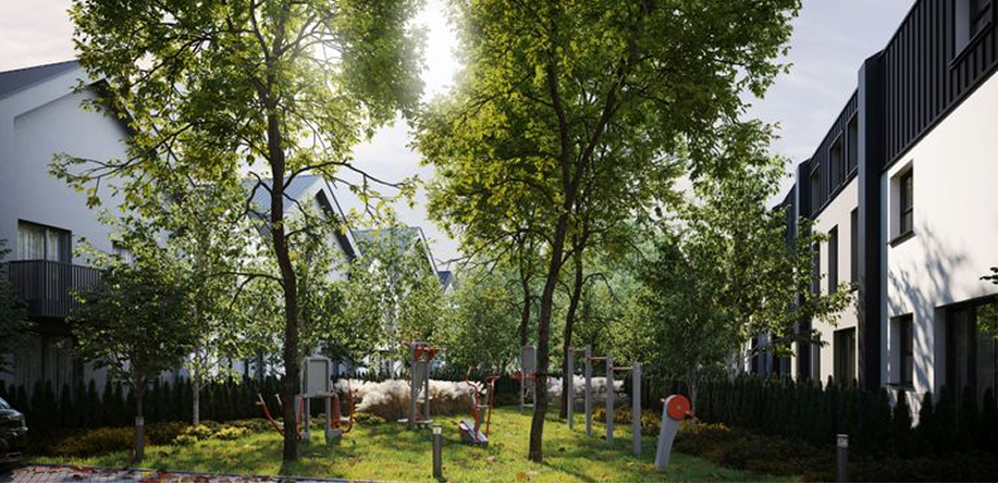 Starannie zaprojektowana zieleń tworzy przyjazny klimat i zapewnia mieszkańcom poczucie prywatności.
